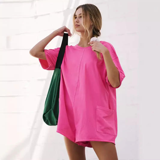 Rompers for Women Casual Short Sleeve Oversized Athletic Workout Reversible Hot Shot Tee Romper Deep Pockets