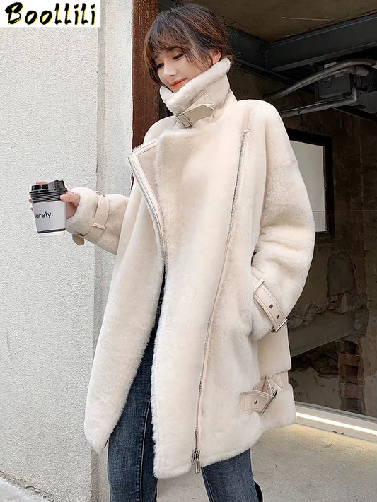 Sheep Boollili Natural Shearing Real Fur Coat Women 100% Wool Jacket Women Clothes 2023 Winter Coat Women Korean Fur Tops
