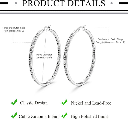 Stainless Steel Women Hoop Earrings Cute Huggie Earrings Cubic Zirconia Inlaid 50MM