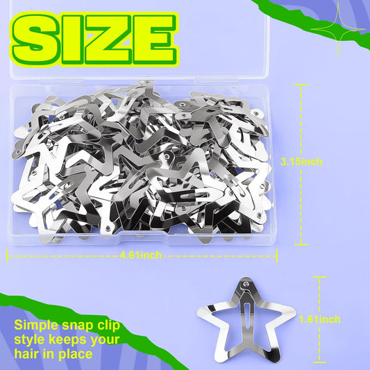 30 PCS 1.61" Star Hair Clips, Y2K Hair Accessories, Silver Star Clips for Girls Women, Rave Accessories, Non Slip Star Barrettes, Metal Star Snap Hair Clips